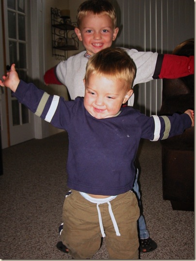 Kaylor is just the cutest little guy ever. (of course I think that, I'm his mom). But lately, he will come up to me and say "ud, ud" with his arms held wide open. That means he is wanting a hug. So I give him a huge hug, and he just giggles. I LOVE it! I just had to get a picture of it and jot it down. It was actually really hard to get the picture, cuz he came at me too fast to get his "UD". And of course, Korban has to copy and get in the picture. He loooves the attention!